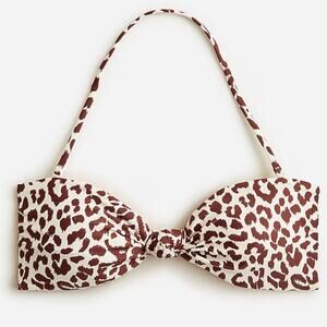 J.CREW Knot Bandeau Bikini Top in Leopard Print Removable Strap Brown 3X NEW