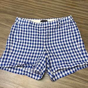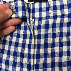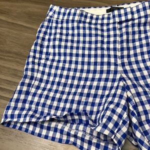 Womens J.Crew 100% Linen blue and white checked shorts size 4.- Measurements: waist 15.5” 10” rise, inseam 5”. Very good pre-owned condition. Please check out all pics and measurements and comment below with any questions