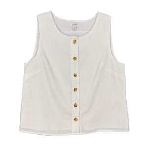 J.CREW Linen-Blend Button-Front Shell M White Tank Top Crewneck NWT B5