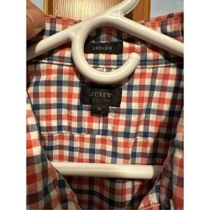J.CREW Ludlow Fit Men's Button up Shirt Red White Blue Plaid 2ply Cotton Size XL