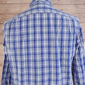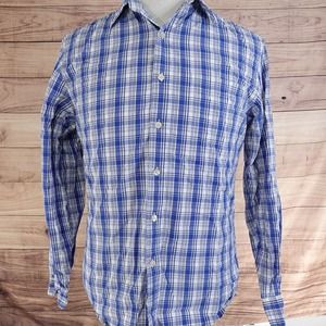 J.CREW MEN'S CASUAL BUTTON UP SHIRT PLAID TAILORED FIT SIZE M BLUE WASHED