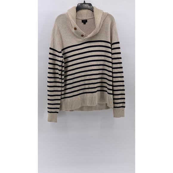 J.CREW Men’s Beige-Navy Striped Two-Button Shawl-Collar Long Sleeve Sweater SZ L