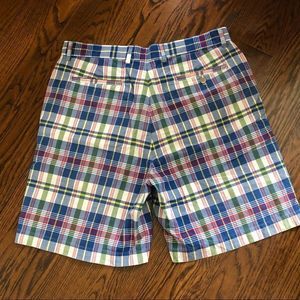 J.CREW Mens Madras Plaid Patchwork Flat Front Shorts Size 34