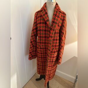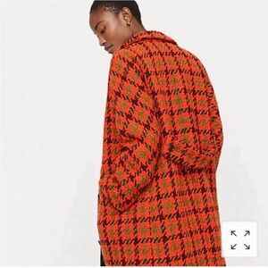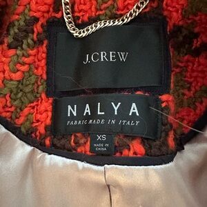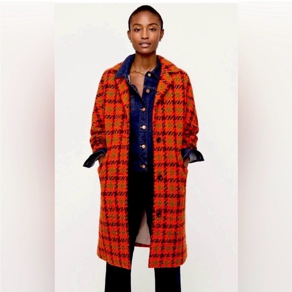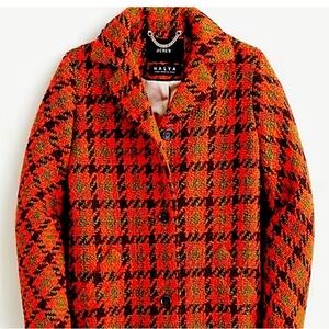 From the boutique collection of JCrew - this is a special coat - not the typical offering. houndstooth tweed from Italy's Nalya Mill. This was a limited edition small run item and much sought after. There is pilling which is typical for the weave of this fabric and not a flaw. A gorgeous piece.