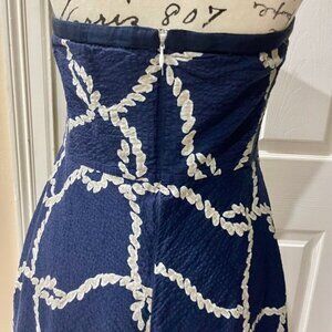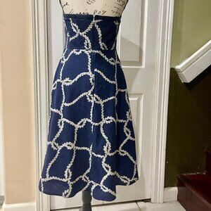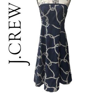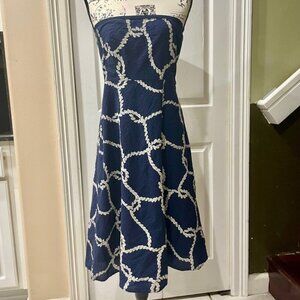 J.CREW NAUTICAL BLUE TAN STRAPLESS DRESS 100%COTTON SIZE 8