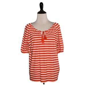 J.CREW NEW $55 Short Sleeve Striped Top Red White Stripe Keyhole Neck XS