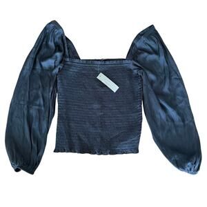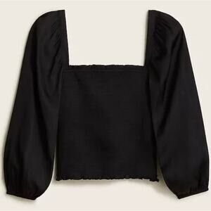 J.CREW | NWT Featherweight Smocked Square Neck Cropped Top Black Satin Size XS