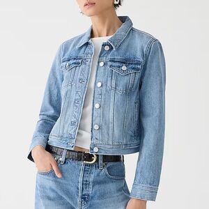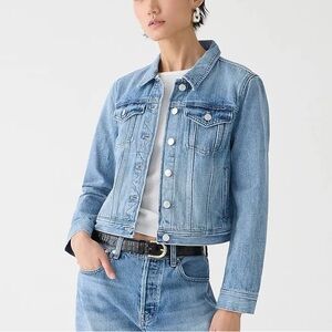 J.CREW New Classic Denim Jacket White Button Front Pockets Cropped Size XL NEW