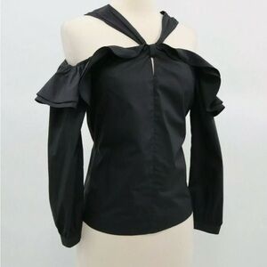 J.CREW Off-the-shoulder Top Blouse Tie-Neck in Black Classy Boho Chic Size 6