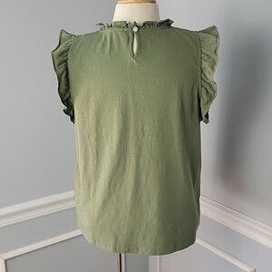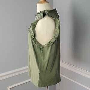 J.CREW Olive Green 100% Cotton Smocked Ruffle Flowy Boho Summer Sleeveless Top