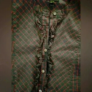 JCREW - TUNIC PLAID POPOVER. NAVY WITH RED. RUFFLE DETAILS SIZE 10 SEE PICS FOR MEASUREMENTS