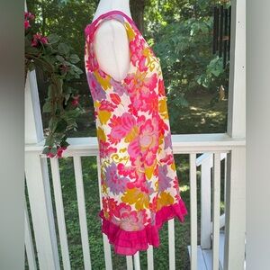 JCREW PREPPY FLORAL VINTAGE COTTON DRESS/TUNIC RUFFLES IN PINK-SIZE MED