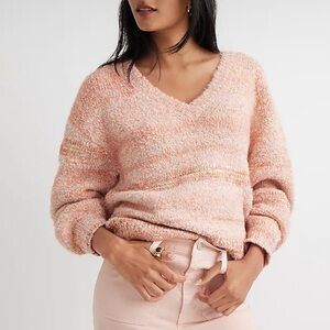 J.CREW PUFF-Sleeve V-Neck Wool Alpaca Blend Sweater in Space Dye Pink, Women's S preloved oversized