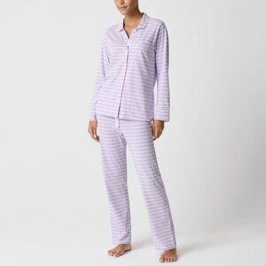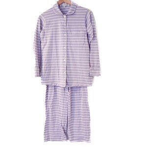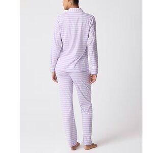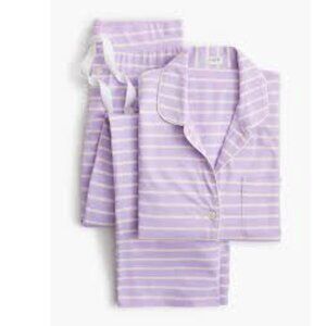 J.CREW Pajama Set Knit Long Sleeve Button Front Small Petite Lilac Ivory NEW!