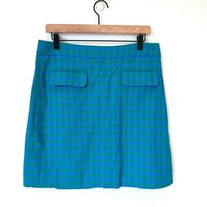 J.CREW Parke Colorful Gingham Plaid Deep Blues Preppy A-Line Mini Skirt NEW- 8