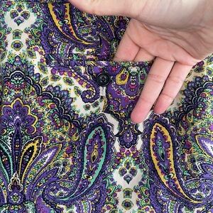 • Color/Pattern: Multicolor Paisley (Purple, Green, Yellow on Cream base)
