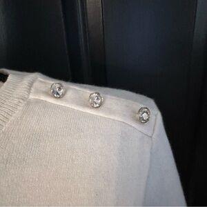New J.CREW RHINESTONE ruffle sweater with shoulder button ivory S (a2