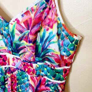 Absolutely stunning, colorful J.CREW Ratti painted pineapple print summer midi dress. This sundress showcases a vibrant pineapple motif from Italy's Ratti print house (home to some of the world's most amazing prints since 1945). Amazing color combination - bright pink, green, blue, yellow, white, and purple. Fully lined. So cute & adorable! Perfect for spring/summer! A super flattering style on!