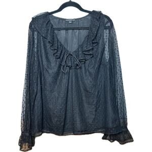 JCREW Ruffleneck Clip Dot Top Womens Sz XL Swiss Dot Dark Cottagecore Whimsigoth