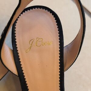 J CREW STUDDED PENNY SANDALS IN Genuine Suede WITH WOOD HEEL. Excellent used condition, very little wear to exterior of shoe (most wear is to bottom of shoe and a small amount of wear on foot bed). Please see measurements pictures.