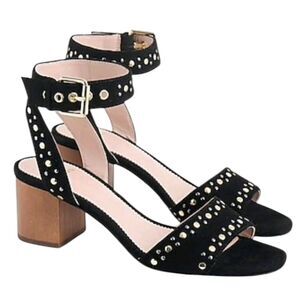 J CREW STUDDED PENNY SANDALS IN SUEDE WITH WOOD HEEL Size 8