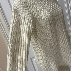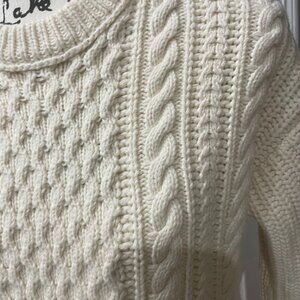 J.CREW SWEATER FISHERMEN CABLE KNIT FRINGE CHUNKY TAN SZ XS OVERSIZED AESTHETIC