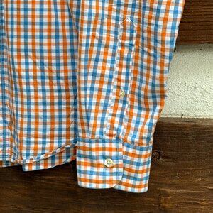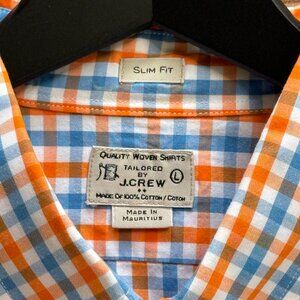 J.CREW Shirt Men’s Woven Tailored Slim Fit Button Down Check Blue Orange Sz L
