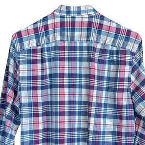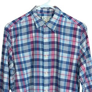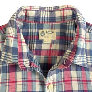 J.CREW Shirtings Men Button Up Sz. Small 100% Cotton Plaid Blue White Red Casual