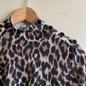 J.CREW Silk-blend shoulder-button sweater in leopard animal print AR952 Small