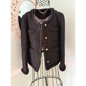 J.CREW Size 8 Cropped wool lady jacket with gold buttons BLACK Style F9995