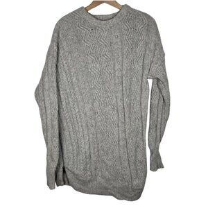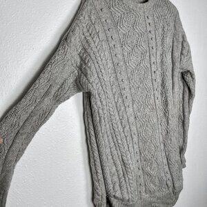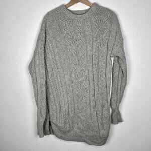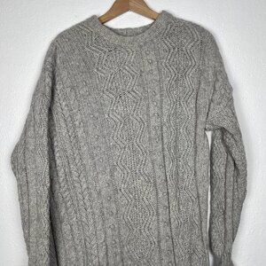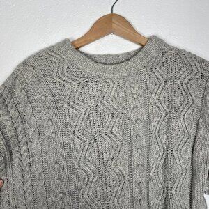 JCREW Size Medium 100% Wool Cable Knit Fisherman Asymmetrical Zip Gray Sweater
