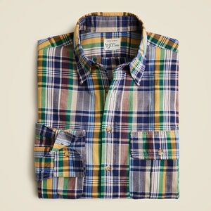 JCREW Size S Two-Pocket Workshirt Indian Madras Kendrick Navy Multi $118