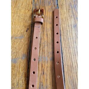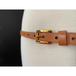 JCREW Skinny Tan Perforated Leather Belts size M/L. Featuring a sturdy tan leather strap, punch holes throughout and a brass square buckle. Wear over sweaters, oversized shirts or your favorite pair of jeans.