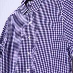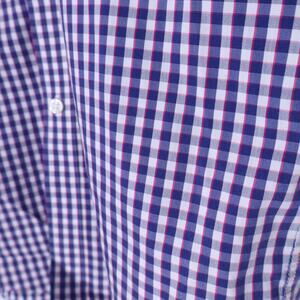 A slim-fit dress shirt with a white and blue gingham pattern. Features a spread collar, button cuffs, and a button-up front. Stock photo is for reference only, my photos show the actual color you'll receive.