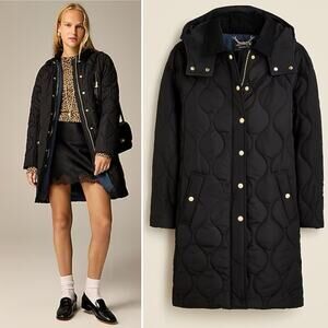J.CREW Stowe Puffer Jacket with PrimaLoft Black Quilted Long Pockets Size XS NEW
