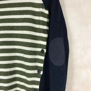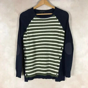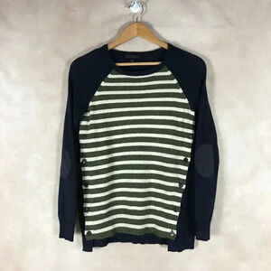 J.CREW Striped Elbow Patch Women's Sweater - Side button detail, hi-low hem; elbow patches