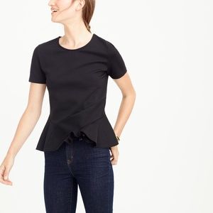 Structured flutter-hem T-shirt by J.CREW. Features asymmetric seam detail and peplum hem. Made out of a stretchy, structured ponte knit fabric, which does not wrinkle. Scoop neck pullover with zipper closure in the back.