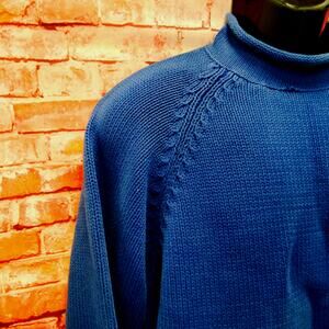 J.CREW Sweater Men's Medium Blue Knitted Ribbed Cuff & Hem Roll Neck Classic Fit