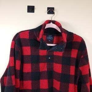 J.CREW Sweater Pullover Buffalo Plaid Check Fleece Shearling Sherpa Snap Size M