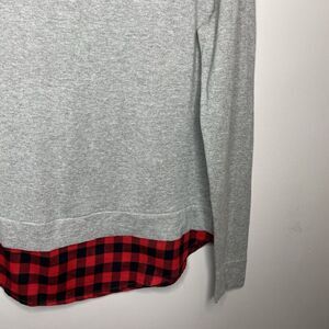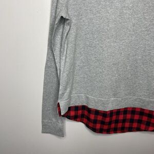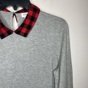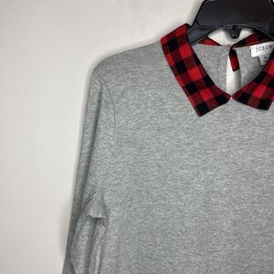 J.CREW Sweater Women Medium Woven-Collar Pullover NEW Check Plaid Gray AF729