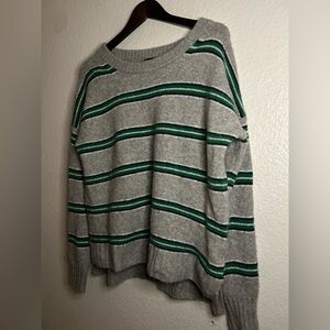 J.CREW Sweater Womens S Wool Alpaca Oversized Boxy Gray Green Striped Cabincore