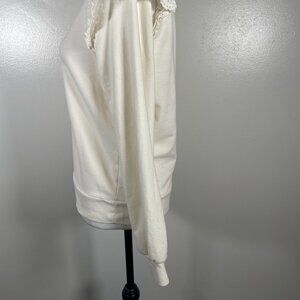 J.CREW Sweatshirt Womens Small Ivory Flutter Long Sleeve Round Neck Pullover