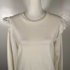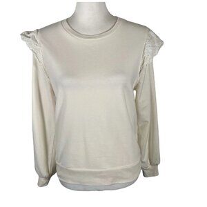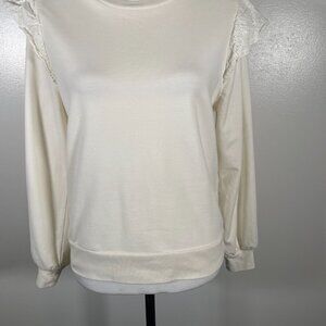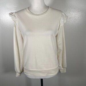 J.CREW Sweatshirt Womens Small Ivory Flutter Long Sleeve Round Neck Pullover
