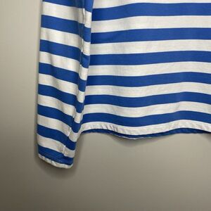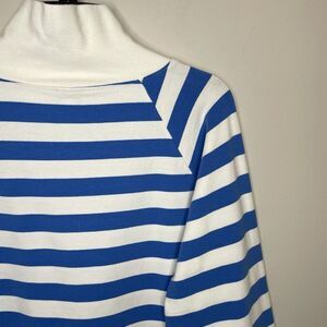 J.CREW Sweatshirt Women Large Striped Button Collar Pullover Terry Blue BQ148