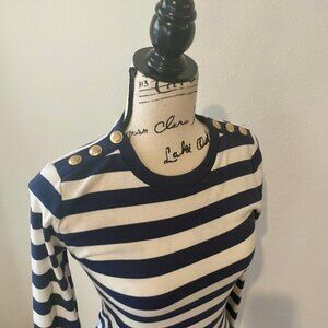J.CREW TOP CREW NECK TAILORED GOLDEN BUTTONS BLUE LINES SZ S COASTAL SAILOR CORE