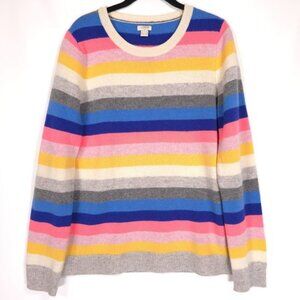 J.CREW Teddie LAMS WOOL Blend Striped Multicolor Colorful Crew Neck Knit Pullover Sweater Size LARGE Women’s Style F7810