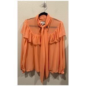 J.CREW Tie-Neck Silk Chiffon Peach Blouse Size L