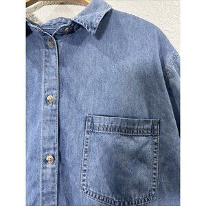 J.CREW Top Garcon Denim Button Up Shirt Womens 18 Blue Chambray Western Preppy