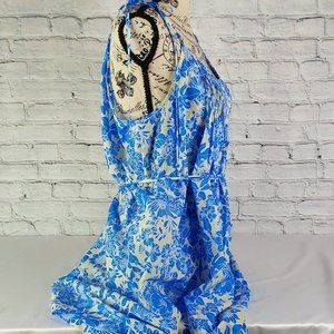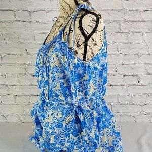 'J.CREW' 'VÌOLIIAY' FLORAL SHOULDER TIE PLEATED ROMPER DRESS ƁLUE-IVOŔI'