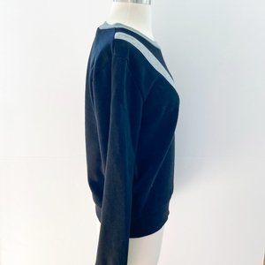 J.Crew black sweatshirt. Scoop neck with grey triangle detailing.